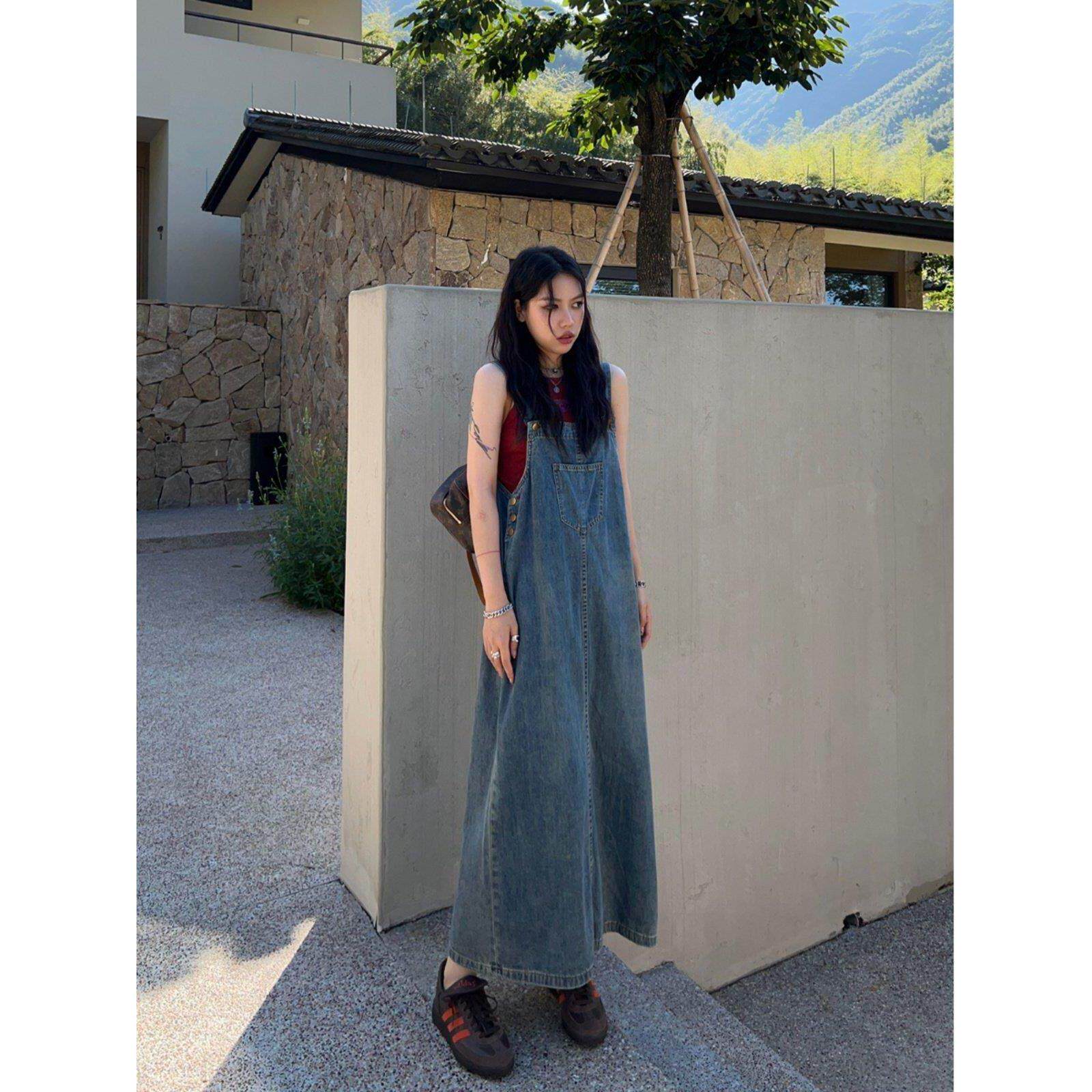 复古做旧净版牛仔连衣裙女无袖背带裙宽松显瘦工装风中长款背心裙