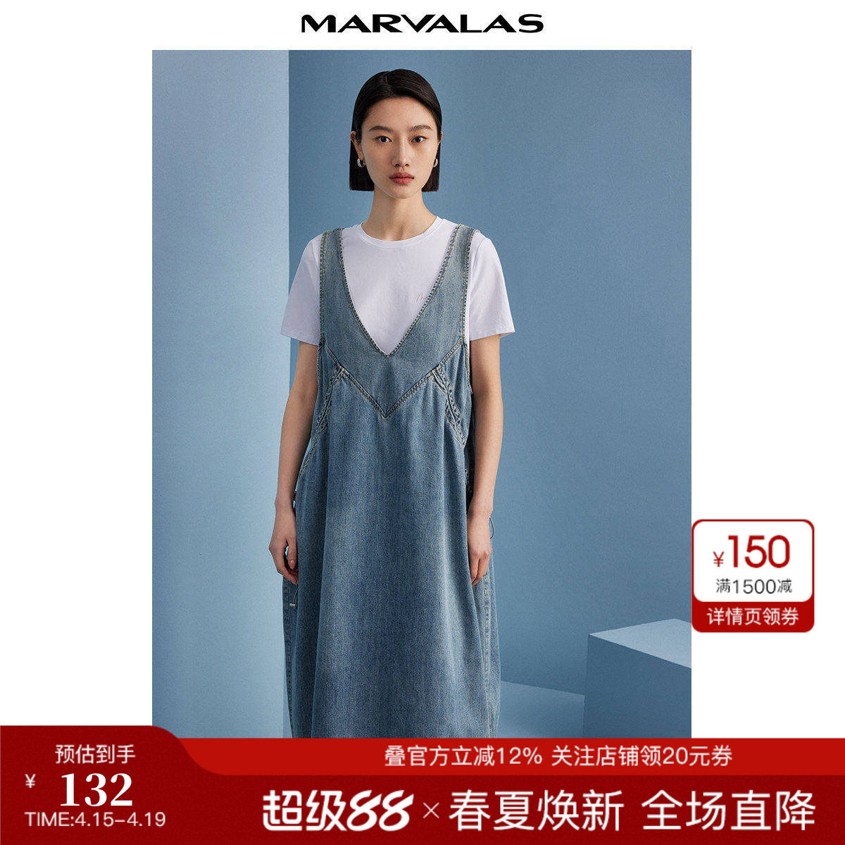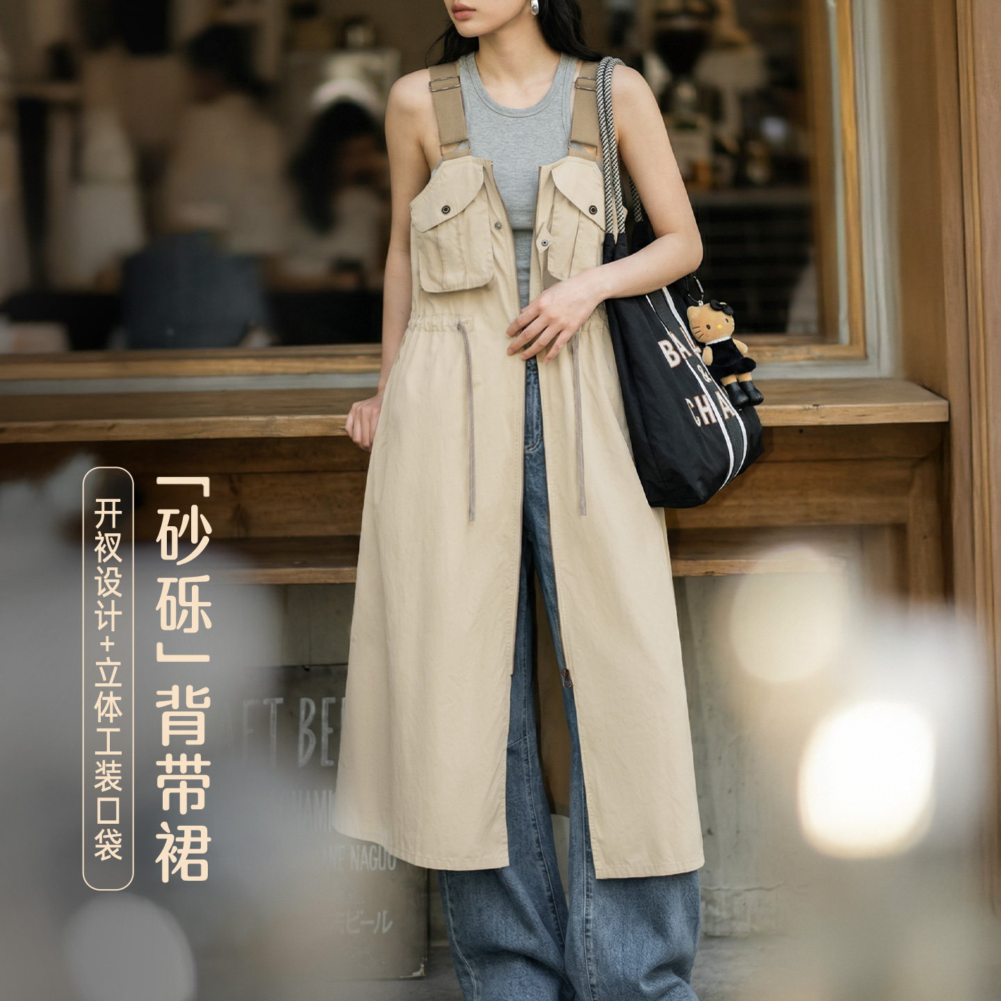 马登轻薄长款透气宽松工装背带裙收腰A字开叉连衣身裙子外套女夏