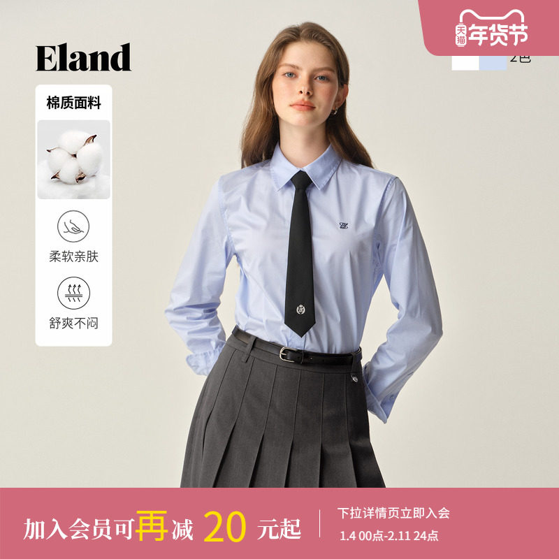 【61%棉】Eland衣恋衬衫女气质通勤长袖上衣2025冬季新款