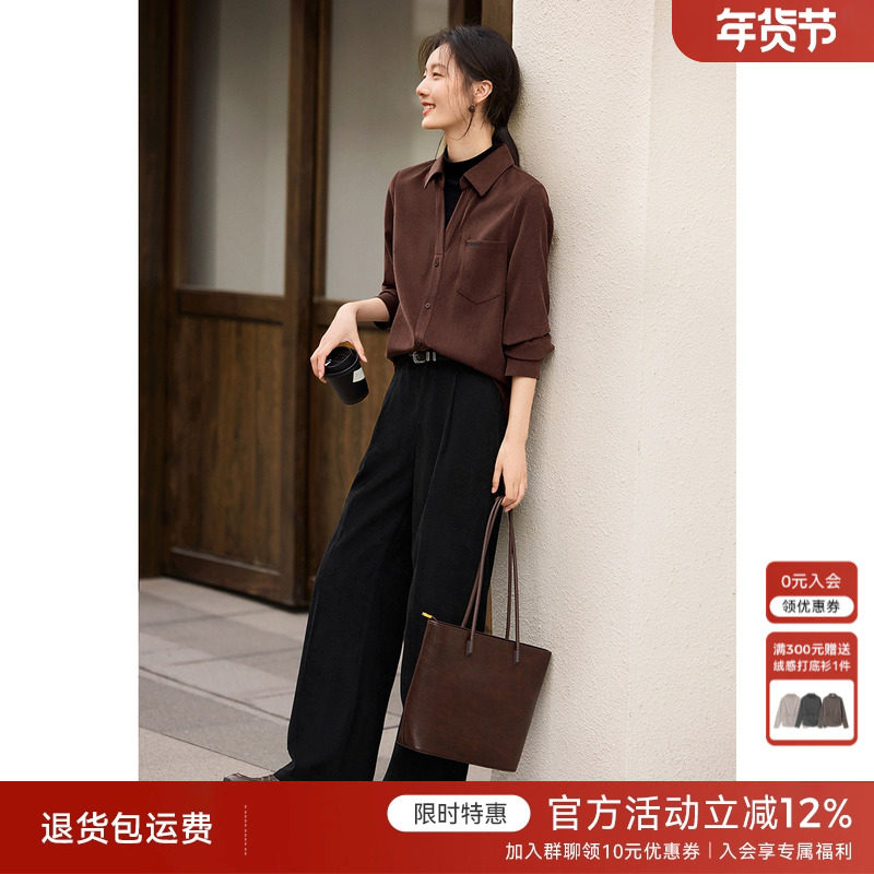 【含绵羊毛】Eland衣恋衬衫女时尚通勤翻领长袖上衣2025冬季新款