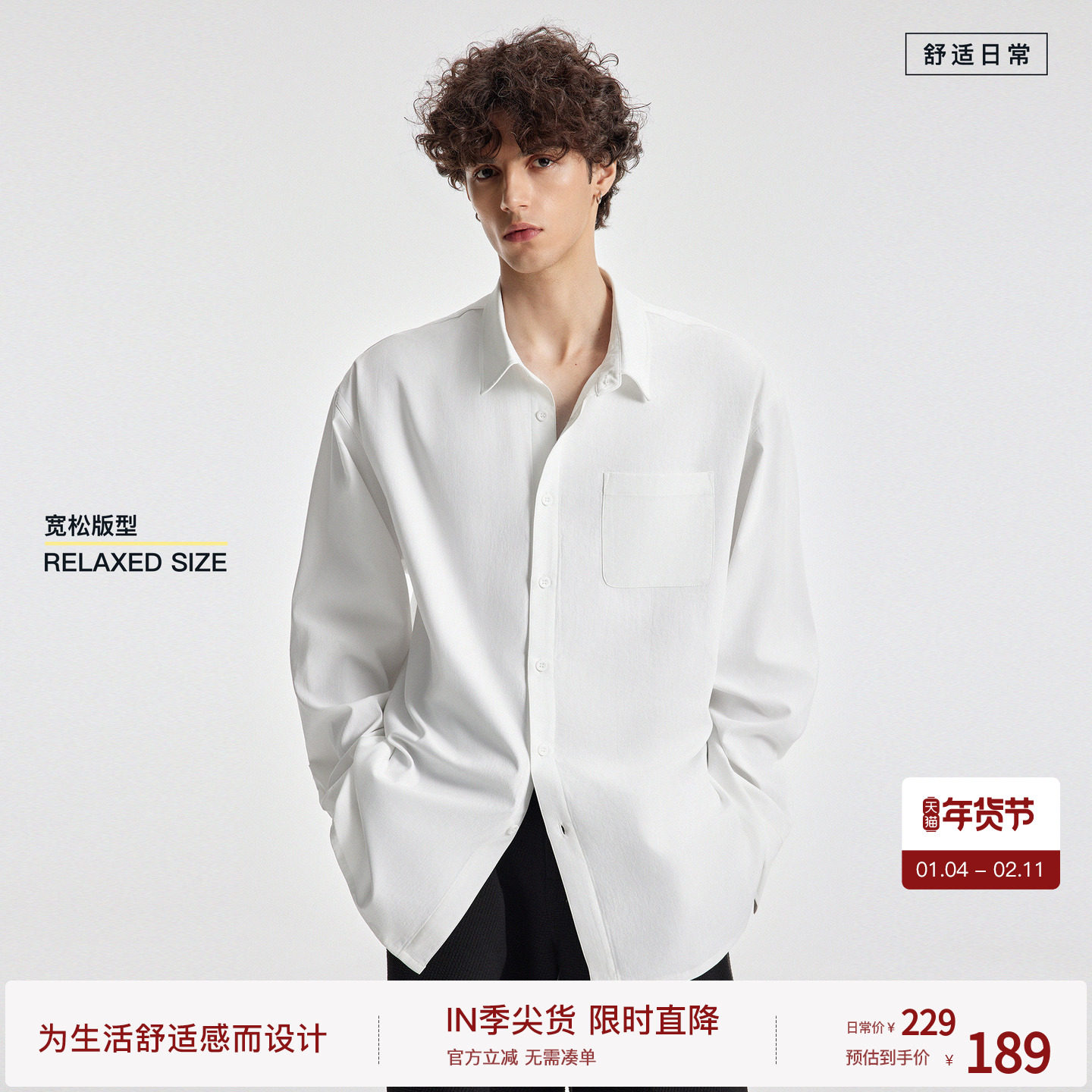 BODYDREAM白色衬衫男长袖GeekChic通勤上衣宽松休闲衬衣/知识分子