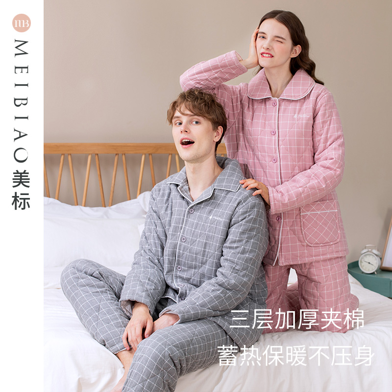 - 三层加厚夹棉睡衣女冬