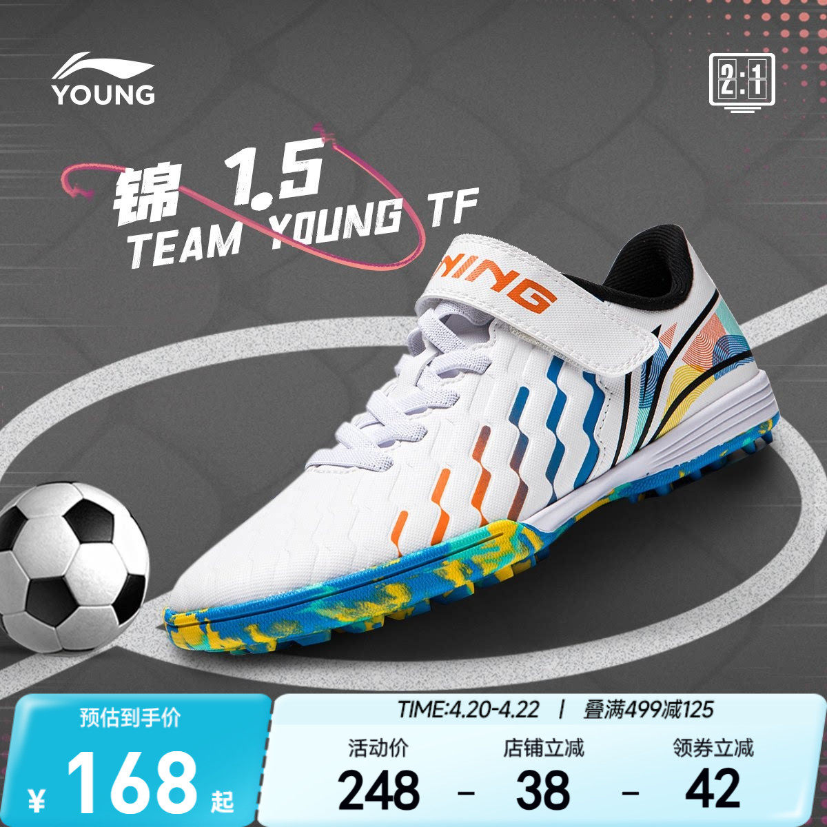 李宁碎钉专业足球鞋锦 1.5 TF青少年学生训练男童鞋运动鞋YKGU018