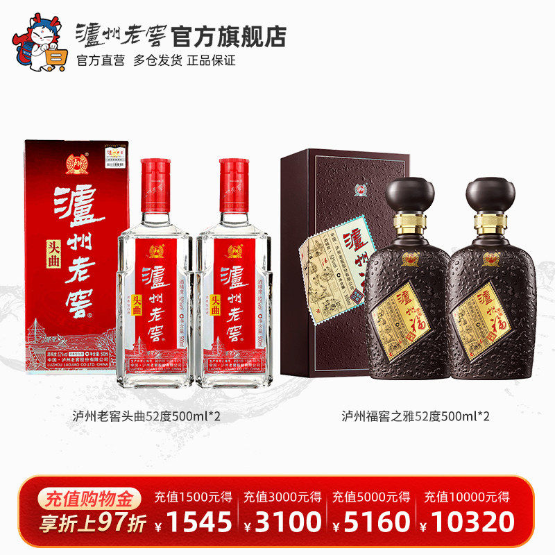 【钜惠组合】泸州老窖52度头曲500ml*2+泸州福窖之雅52度500ml*2