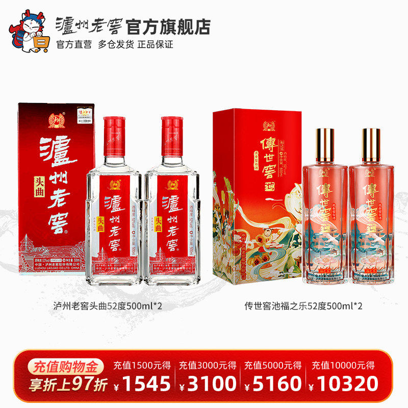 【钜惠组合】泸州老窖52头曲500ml*2+传世窖池福之乐52度500ml*2