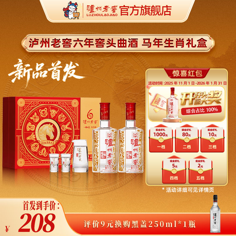 【超级年货节】52度泸州老窖六年窖头曲2026马年生肖礼盒500ml*2