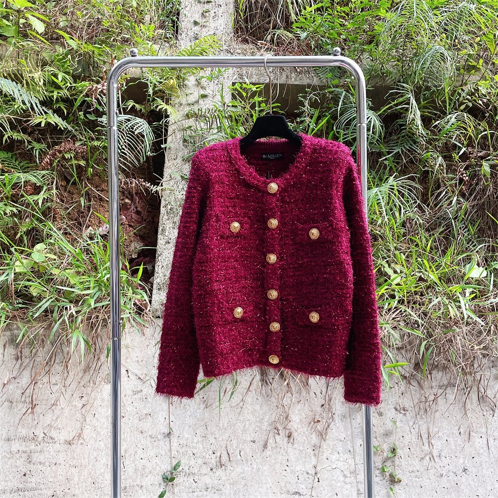小香风金属扣亮丝流苏垫肩外套女气质名媛高级感针织开衫上衣秋冬