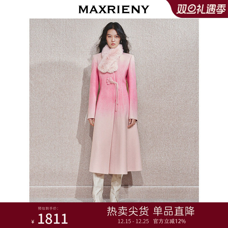 【贵雅日常-商场同款】MAXRIENY渐变流苏收腰大衣外套秋冬新款