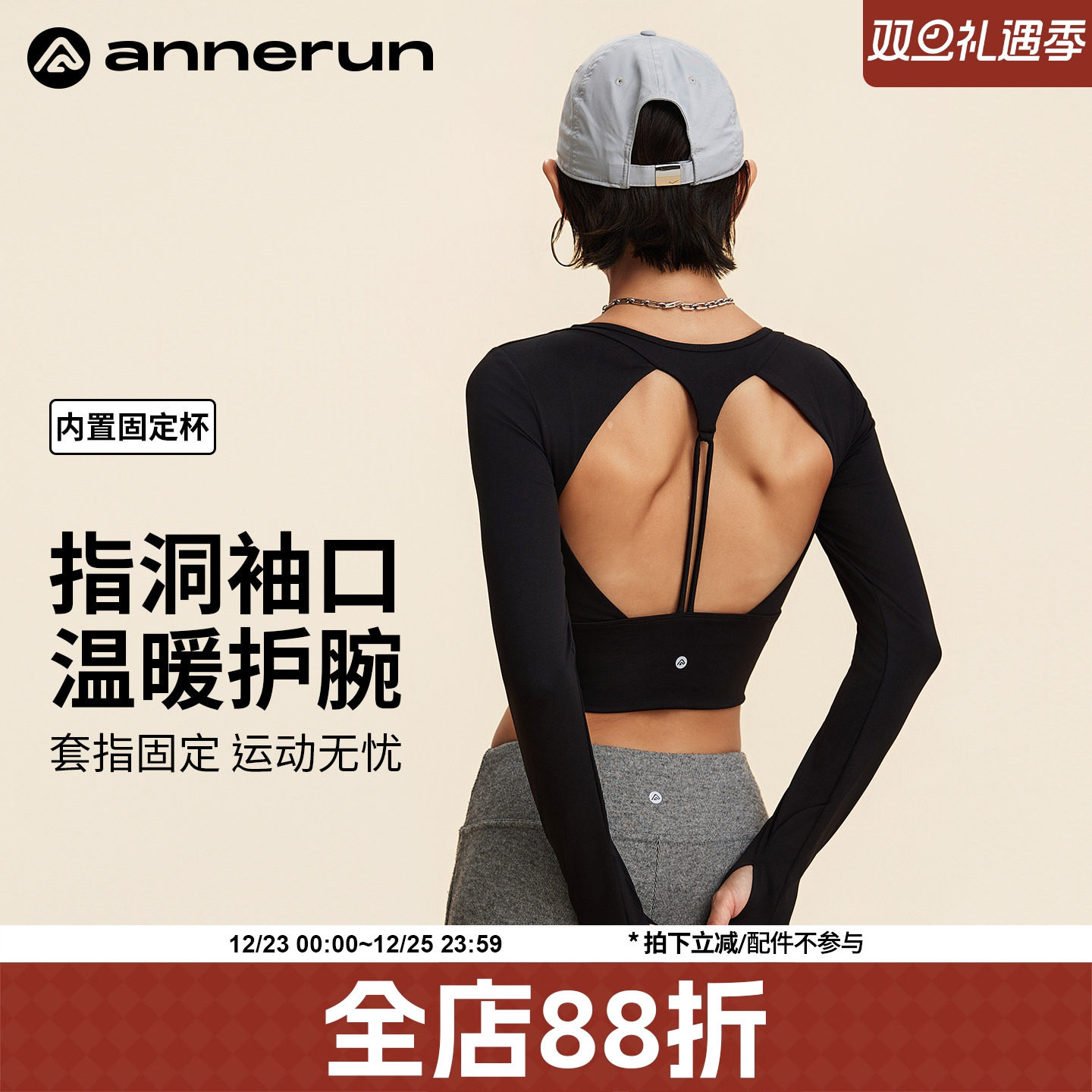 annerun女士运动上衣长袖春秋款修身瑜伽服女2025新款显瘦健身服
