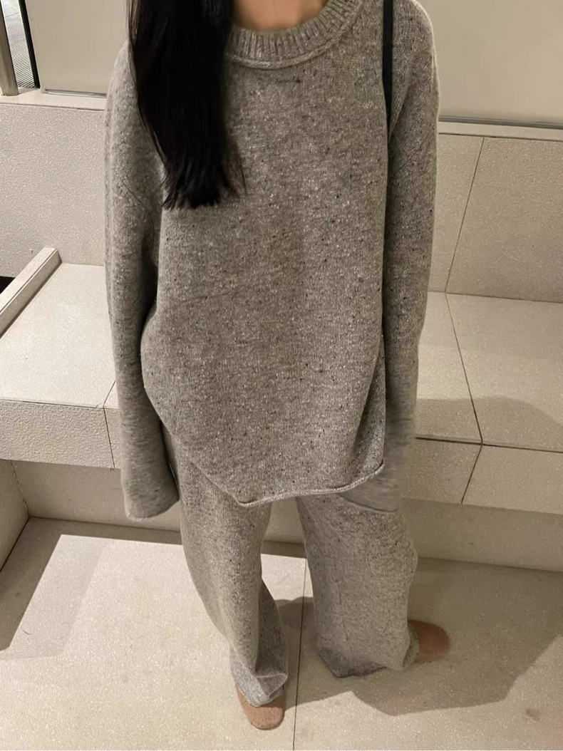 欧洲站2025冬季新款 设计师款小众复古羊毛毛衣针织衫+阔腿裤套装