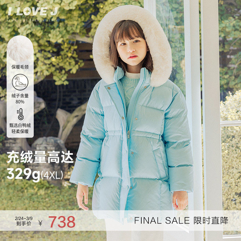 ILOVEJ韩国童装女童中长款羽绒服加厚保暖冬外套/JVWOU82