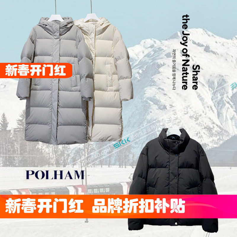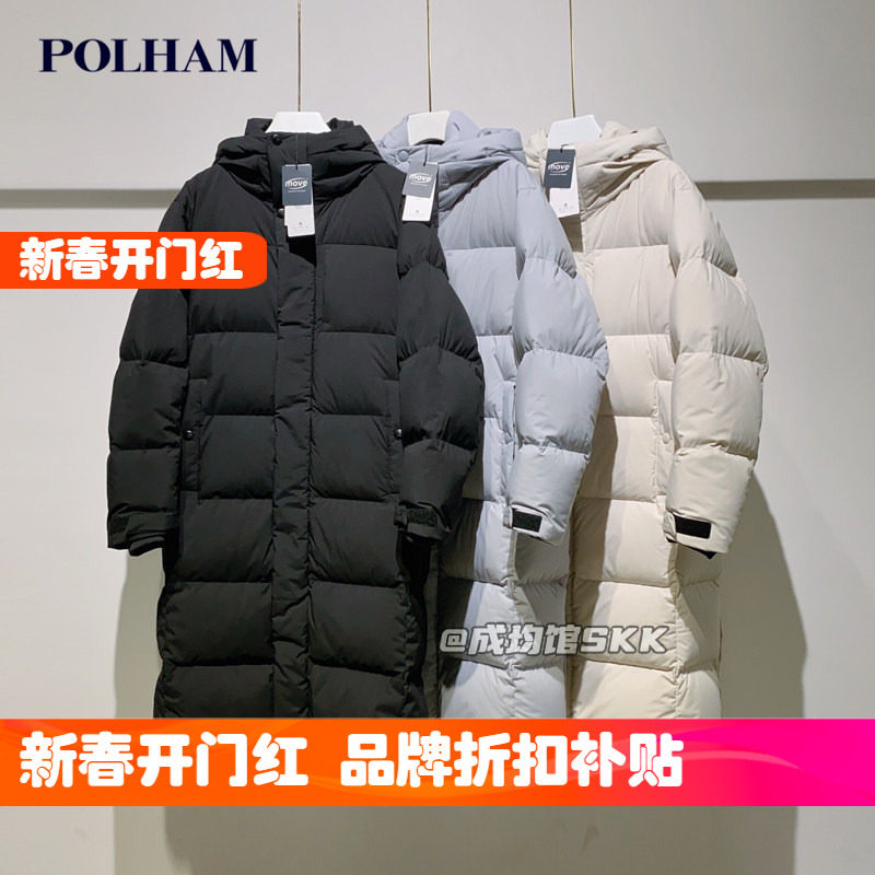 反季特价韩国代购Polham加厚羽绒服男女中长款零下抗寒连帽外套冬