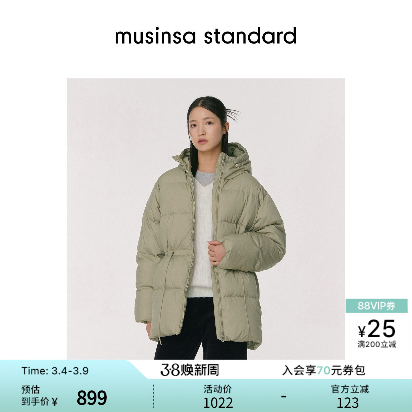 韩国秋冬女士时尚百搭连帽中长款羽绒服外套musinsa standard