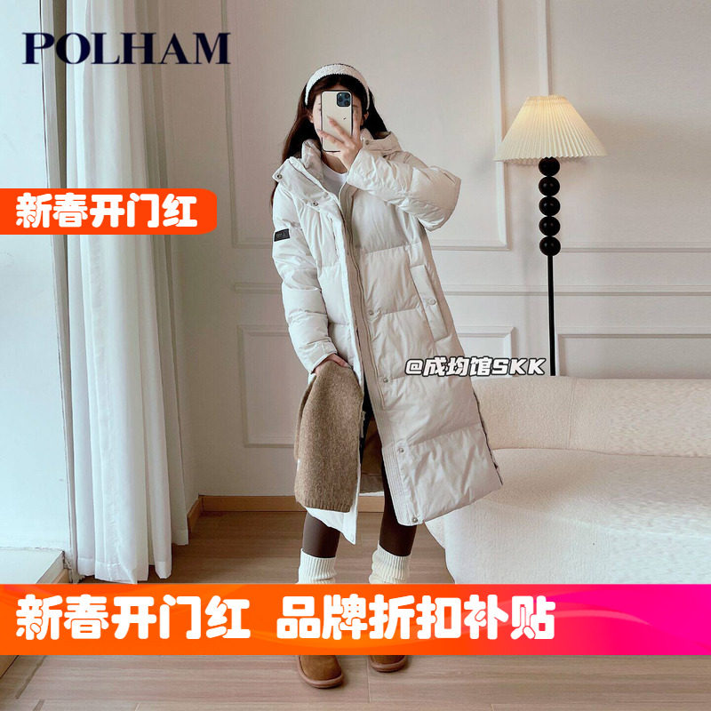 反季韩国代购Polham加厚中长款连帽羽绒服防寒服女轻便净版短外套