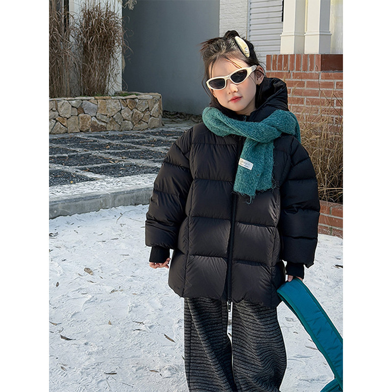 韩国儿童中长款羽绒服2025冬季新款男女童中大童泡芙加厚连帽外套