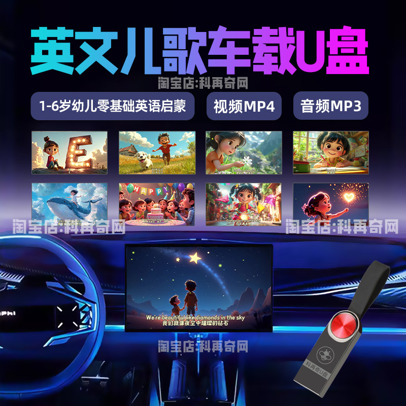 儿童英文歌车载音乐u盘学英语启蒙儿歌汽车MP3MP4音频视频歌曲