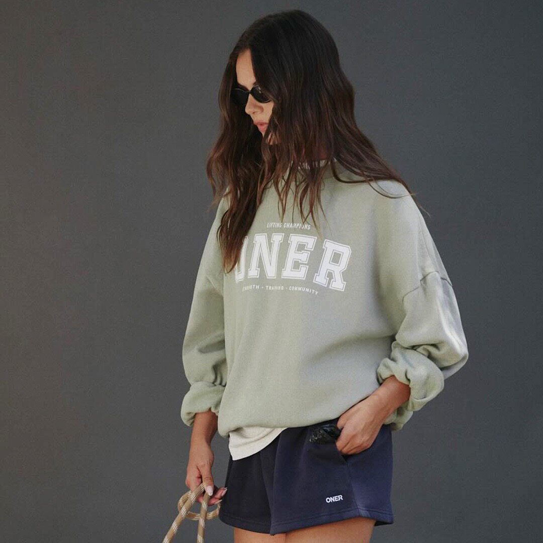 Oner新款圆领卫衣落肩Oversize卫衣加绒纯棉百搭运动卫衣