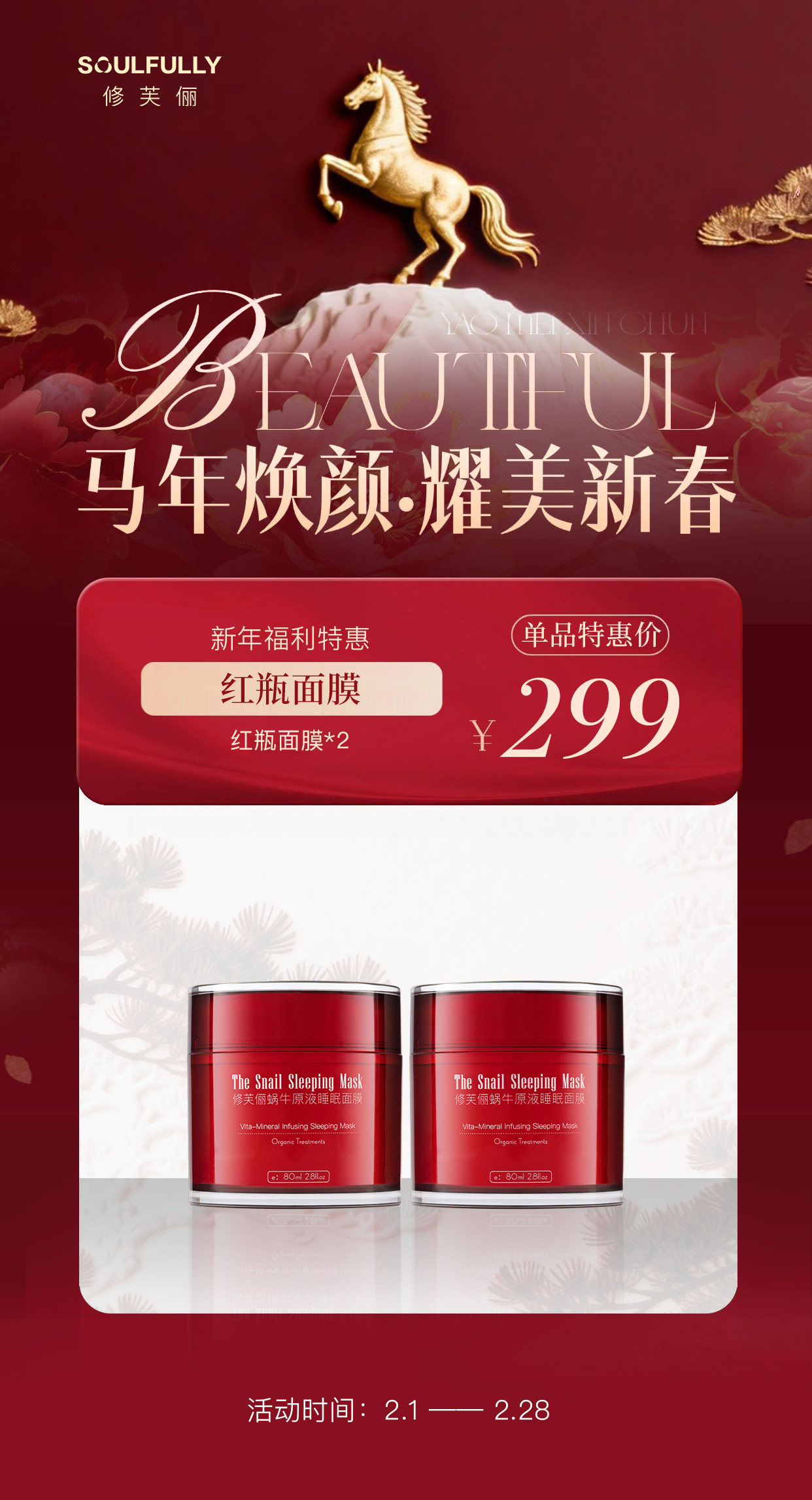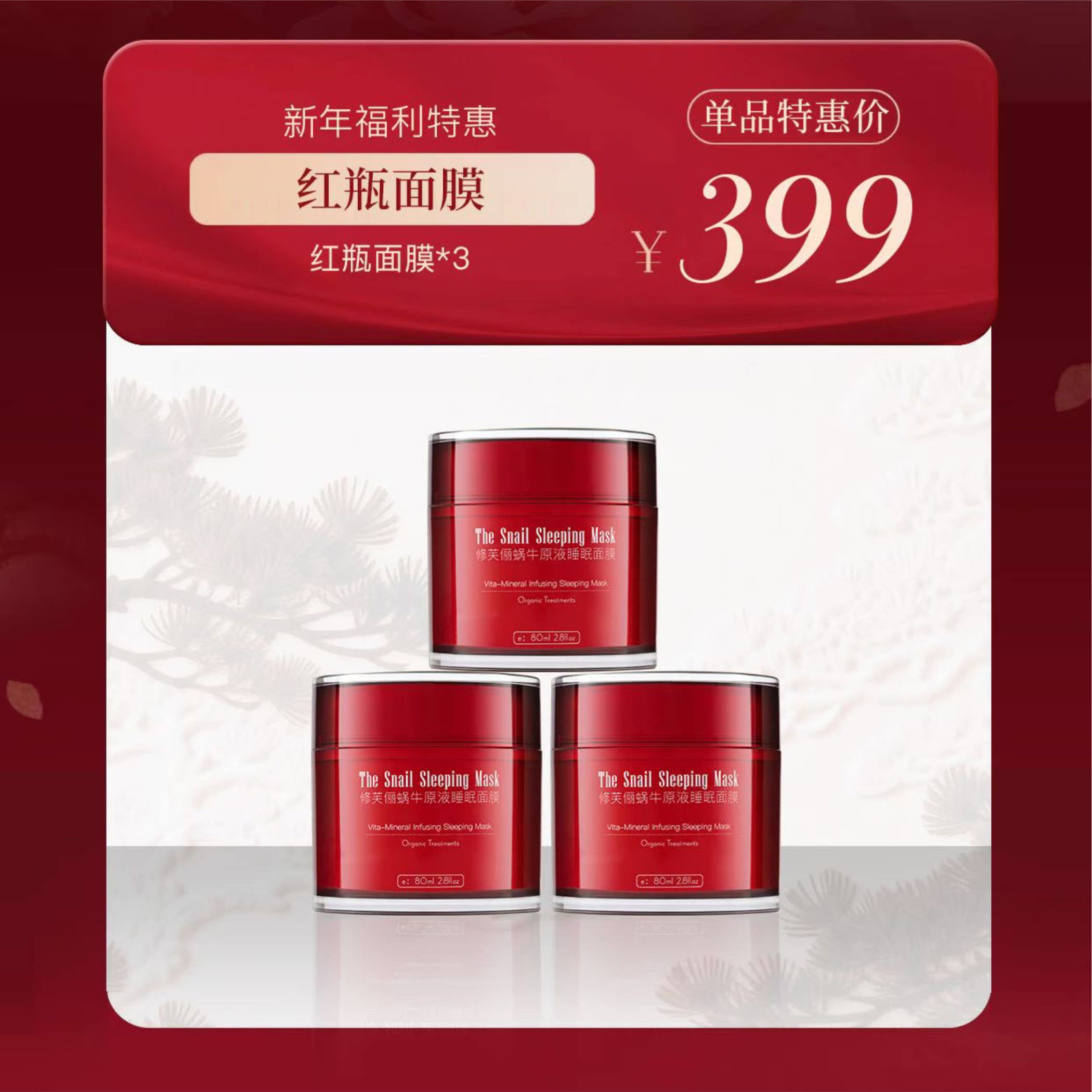 官网正品修芙俪蜗牛睡眠免洗面膜补水滋润修复小红瓶面霜提亮肤色