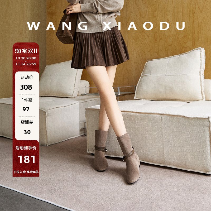 原创【王小毒】秋日风信●4cm内增高骑士靴女绒面平底游牧风短靴