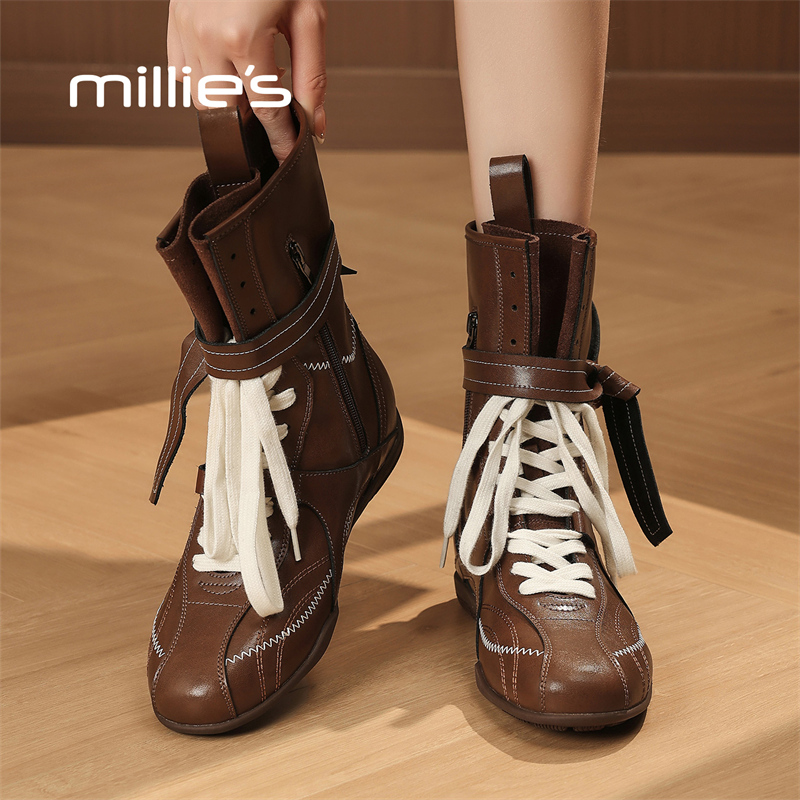 MILLIE'S/妙丽复古马丁靴女英伦风2025新款配裙子平底内增高短靴