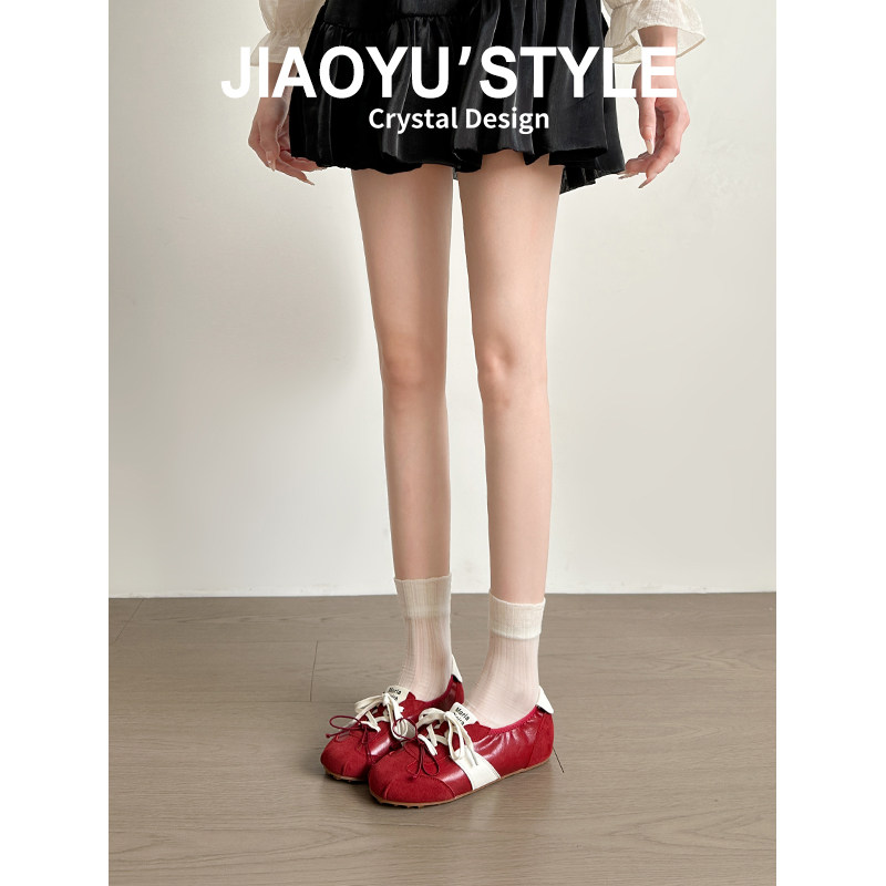 真皮~内增高芭蕾德训鞋女2026春季新款美拉德系带板鞋休闲阿甘鞋