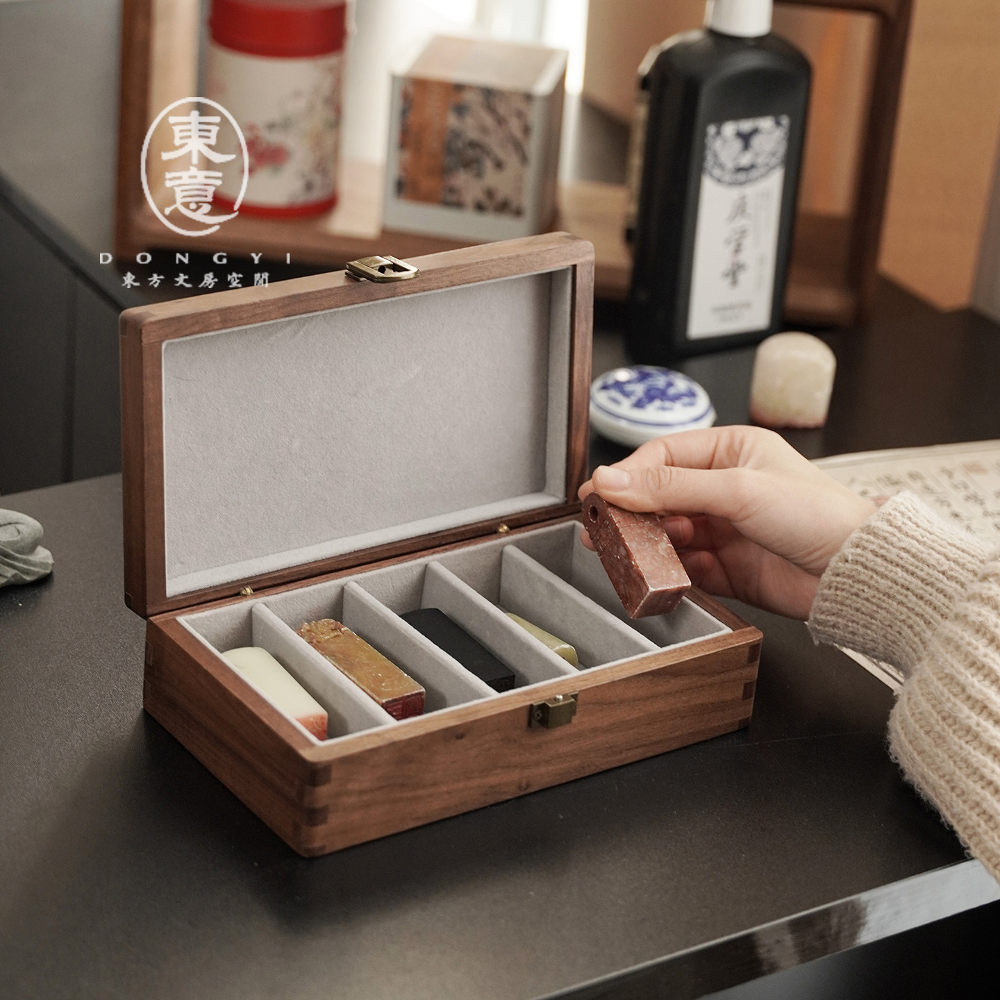 胡桃木印章收纳盒5格小巧纪念币硬币贵金属木盒长手串文玩首饰盒