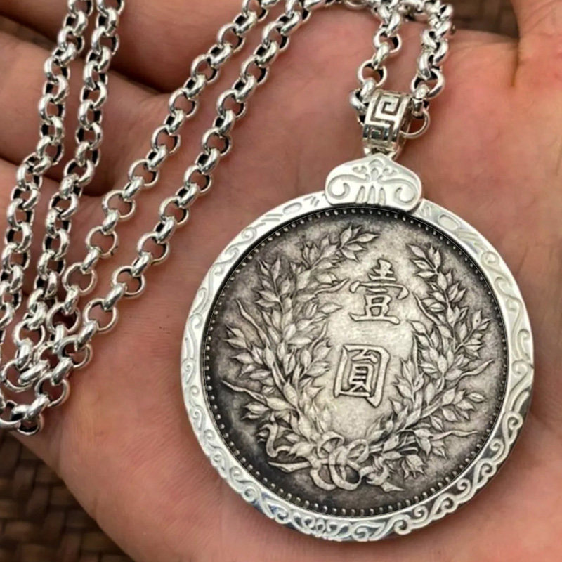 银元圈边框纪念币硬币古币铜钱外壳袁大头吊坠包边空托钥匙扣挂件