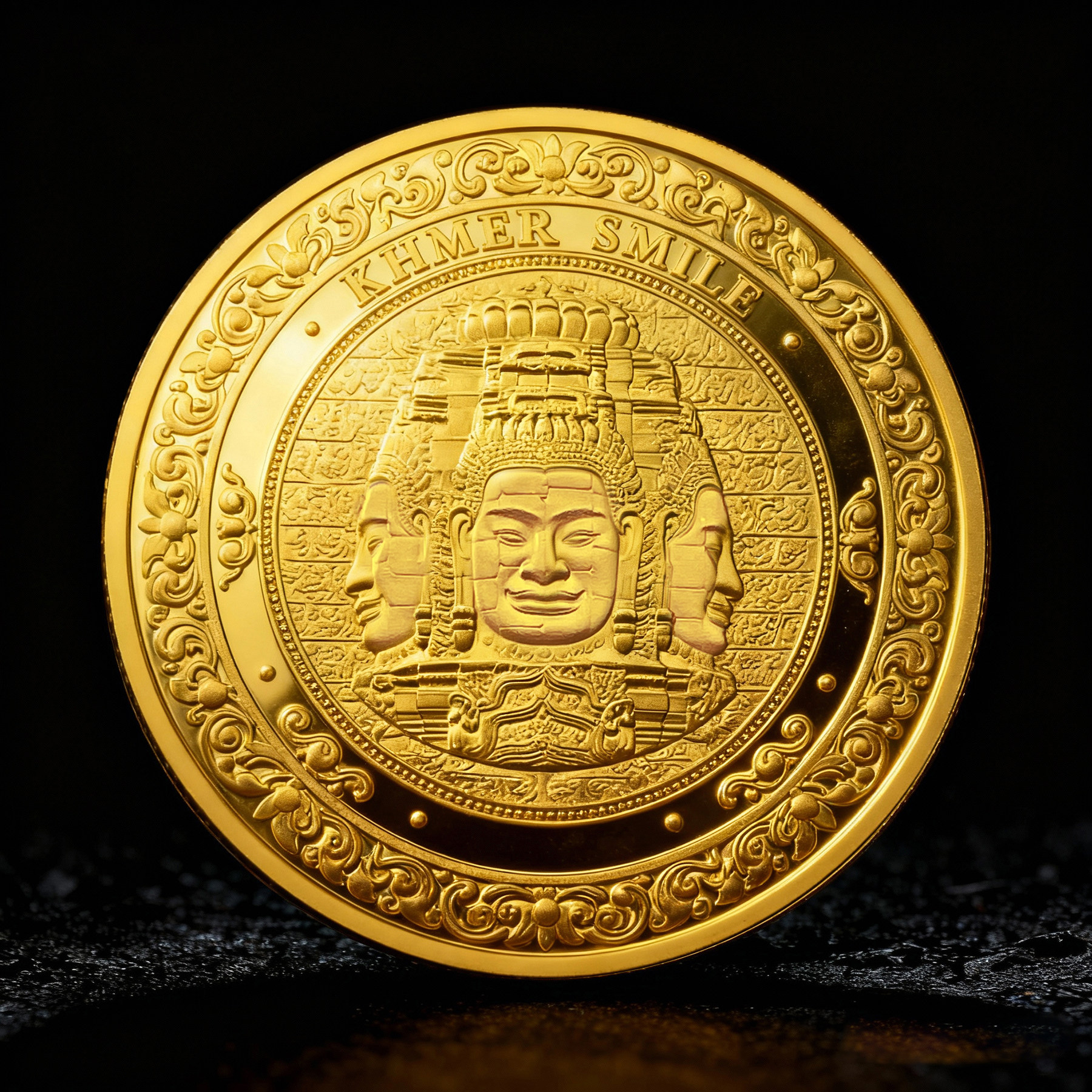 柬埔寨吴哥窟高棉的微笑纪念币45mm文创旅游硬币Angkor Wat伴手礼