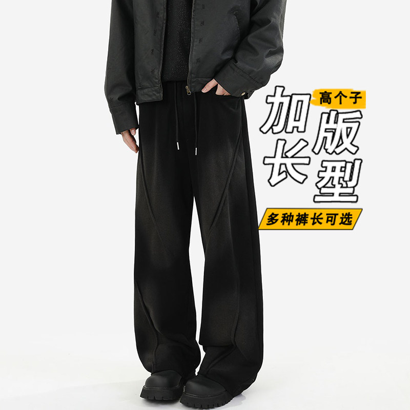 透气加长卫裤男秋季新款高个子裤子青少年190褶皱垂感休闲直筒裤
