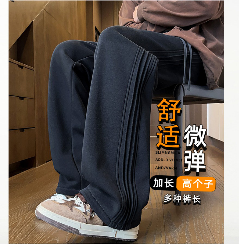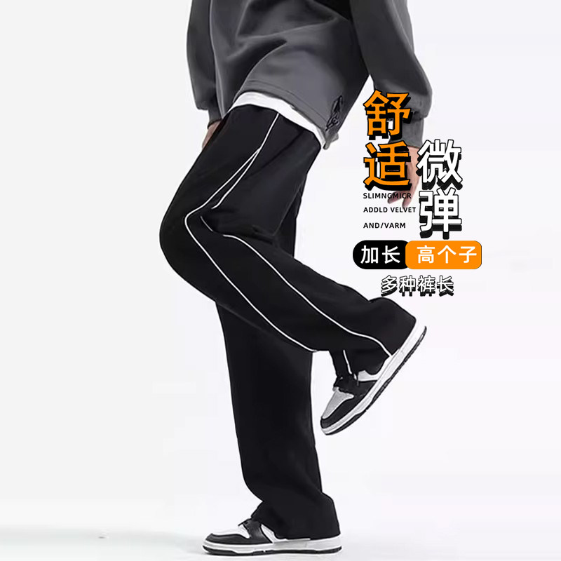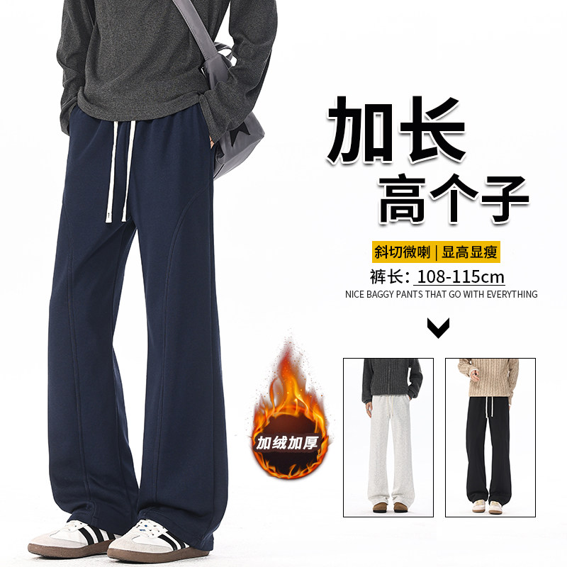 秋冬季加长版裤子男款瘦高个子加绒加厚青少年直筒卫裤休闲运动裤