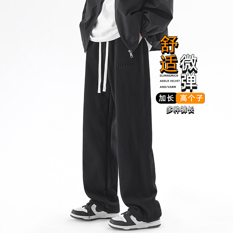 高个子秋冬黑色直筒加长卫裤男宽松百搭大码休闲裤子加绒运动长裤
