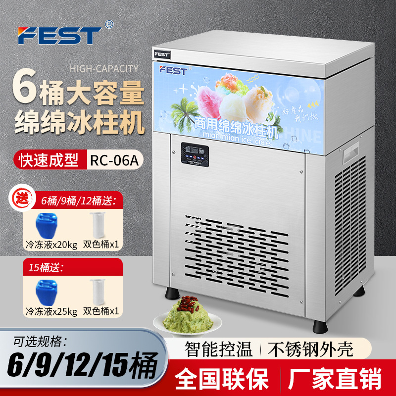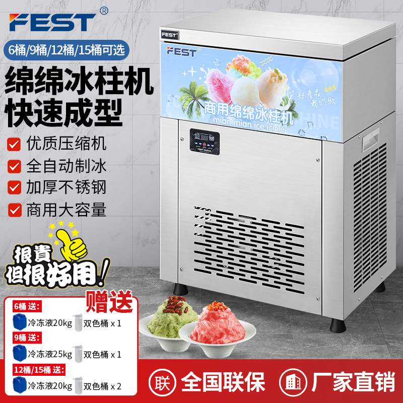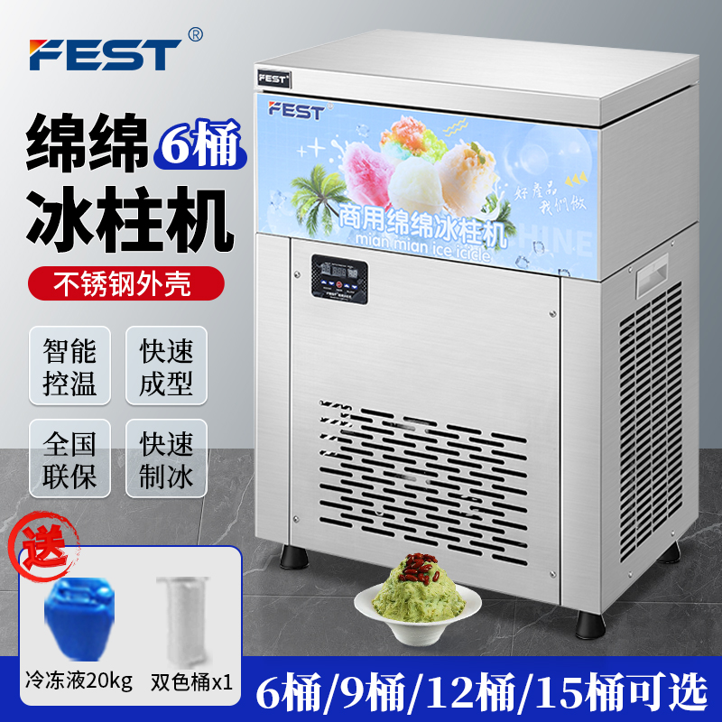 FEST六桶雪花绵绵冰机制冰机商用冰砖机冰柱机9桶12桶15桶 送配方