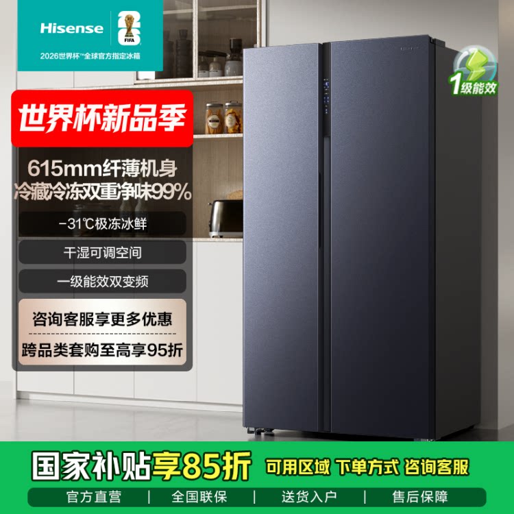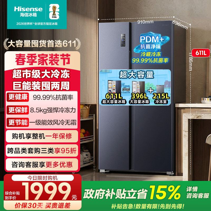 海信611升对双开门电冰箱大容量家用一级能效风冷无霜换新补贴642