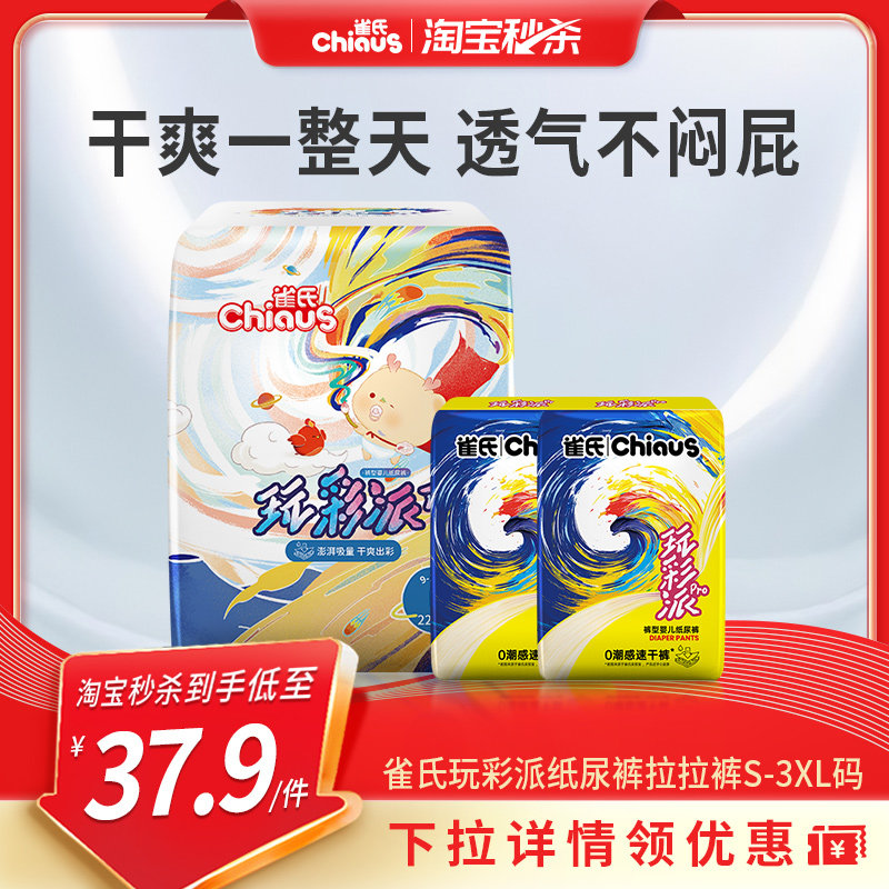 【超干爽】雀氏玩彩派拉拉裤纸尿裤超薄透气S-XXL男女宝宝4包百补