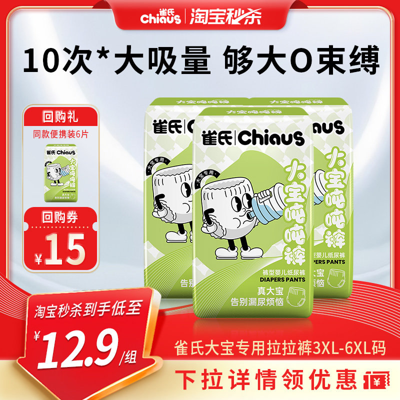 【淘秒】雀氏大宝拉拉裤3XL-6XL码胖宝大码儿童尿不湿学步裤10片