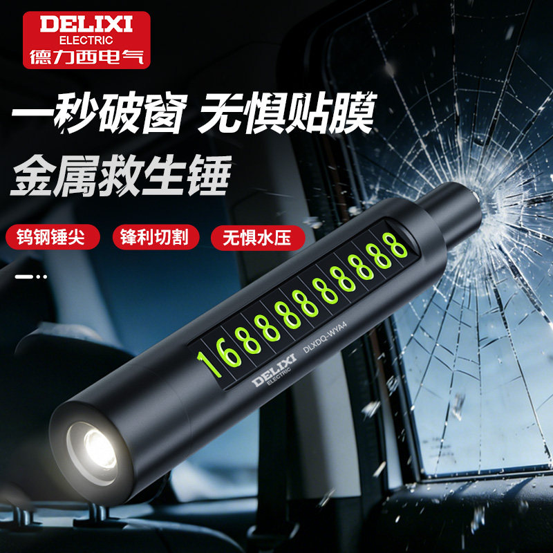 德力西电气汽车临时停车破窗器号码牌多功能移摆件车载手机安全锤