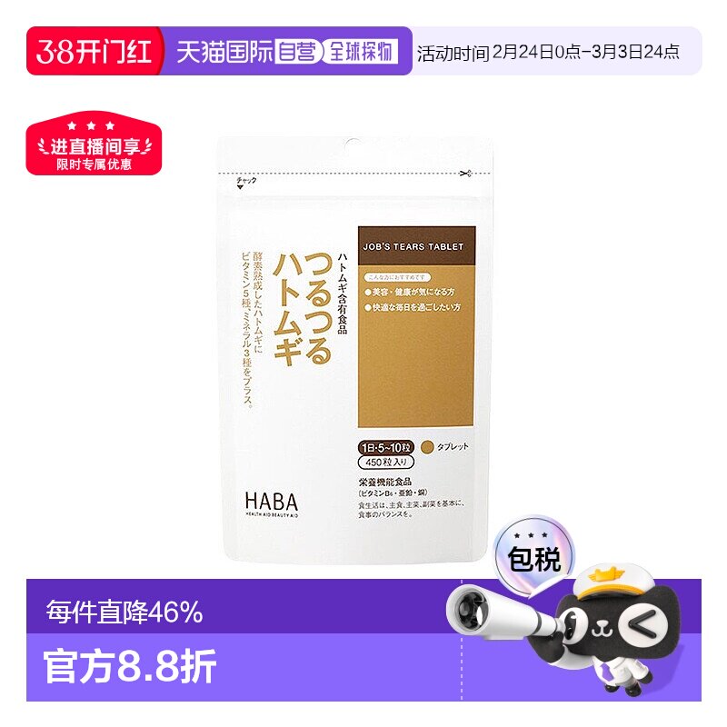 日本直邮HABA无添加薏仁丸精华祛湿气浓缩美肌片3个月量450粒