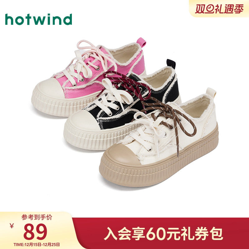 热风厚底帆布鞋女2025年春季新款毛边休闲女鞋百搭减龄板鞋低帮鞋