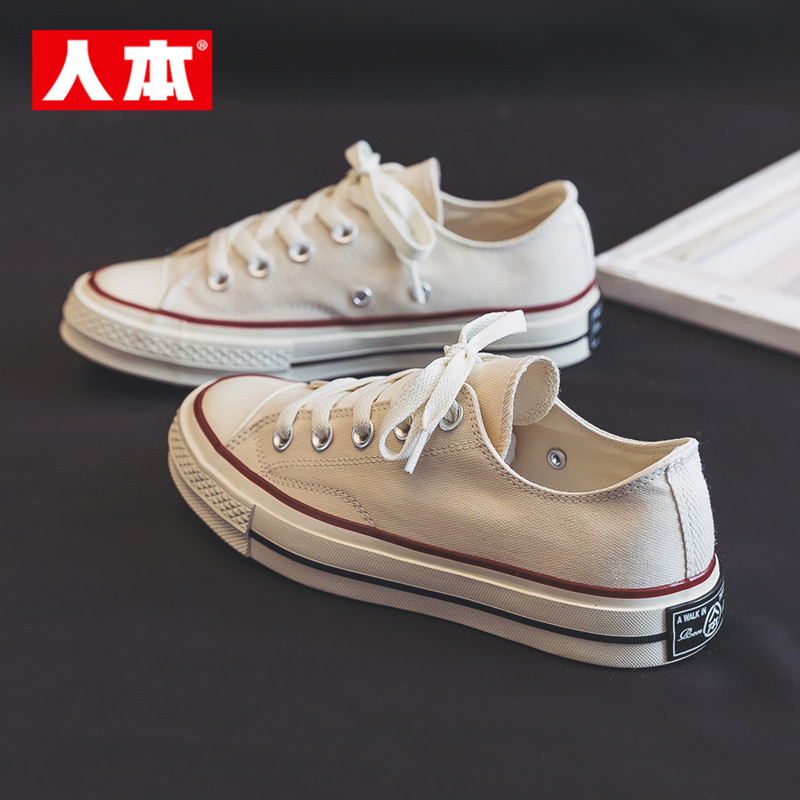 人本女鞋帆布鞋女韩版低帮百搭学生平底透气休闲鞋2026新款板鞋子