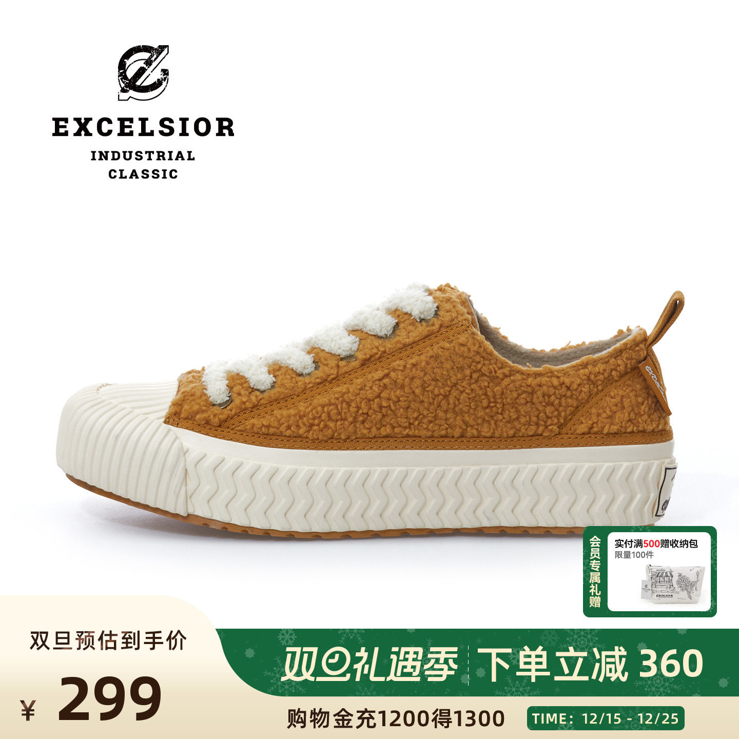 excelsior饼干鞋官方 秋冬板鞋加绒女鞋低帮休闲鞋男厚底帆布鞋