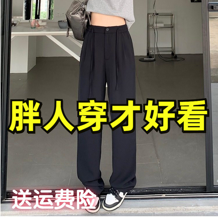 大码西装裤女秋季长裤胖妹妹mm直筒宽松黑色休闲裤垂感高腰阔腿裤