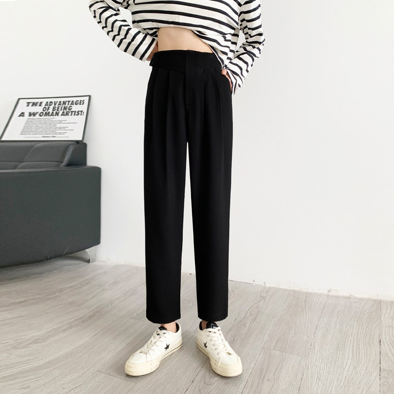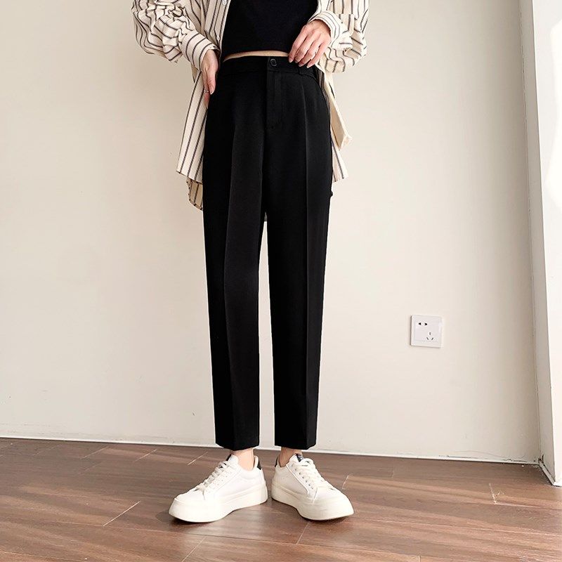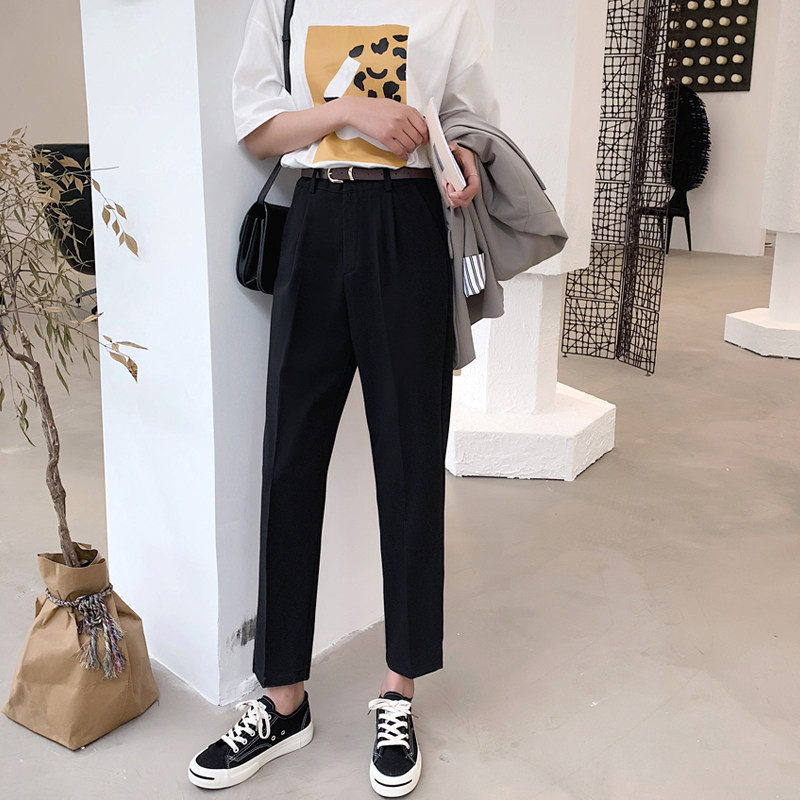 大码西装裤女夏季九分烟管裤学生宽松韩版职业直筒高腰小脚哈伦裤