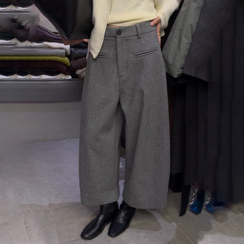 欧货高端定制灰色毛呢大码西装裤女2025冬季新款加厚休闲阔腿裤