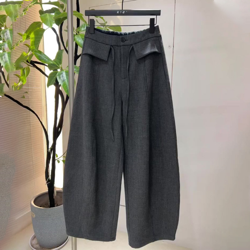 高端定制深灰色毛呢大码西装裤女2025冬季新款加厚垂感休闲阔腿裤
