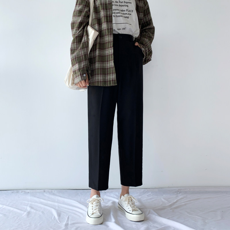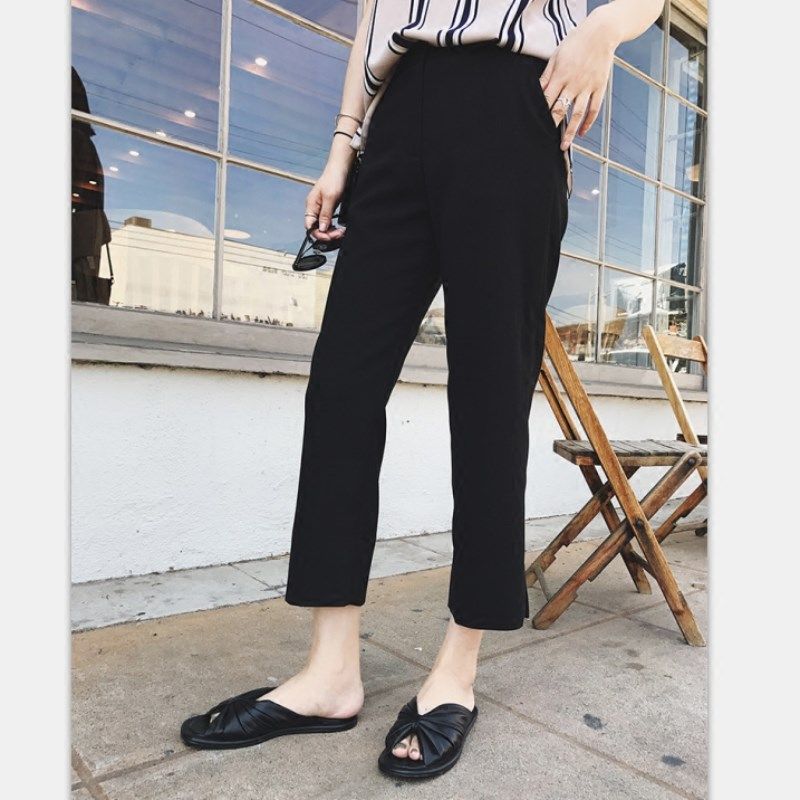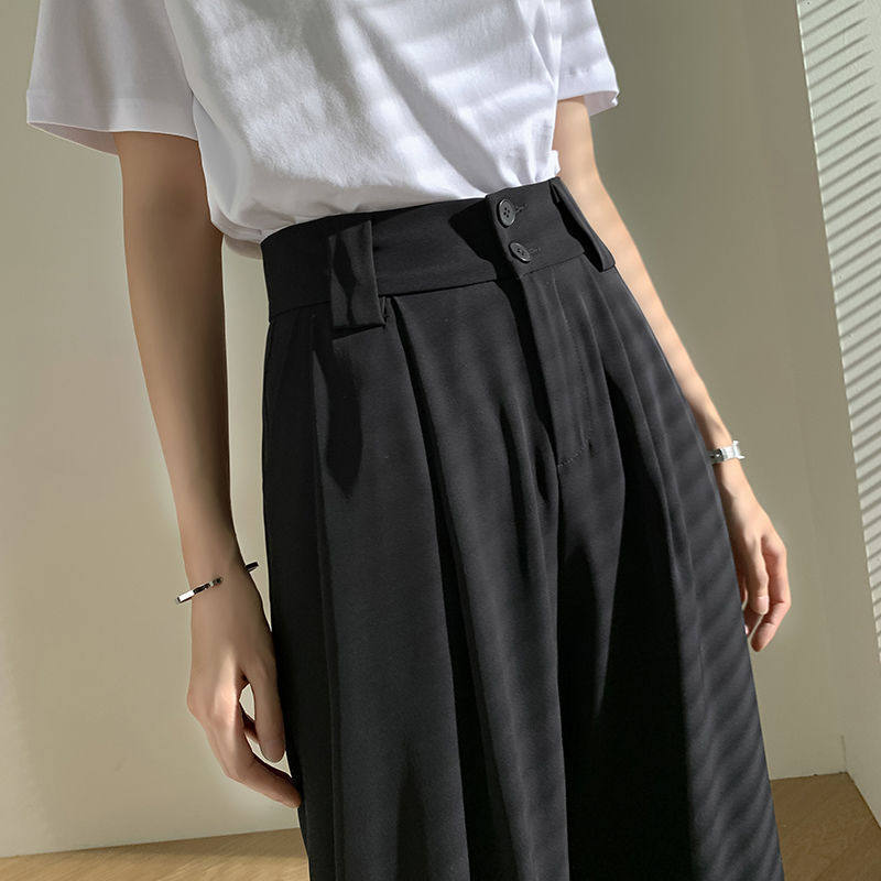 大码黑色西装裤女直筒垂感九分裤休闲裤子宽松职业面试高腰烟管裤