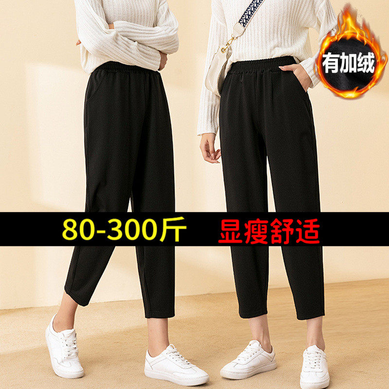 300大码西装裤女200斤胖mm秋冬宽松休闲加绒高腰显瘦萝卜哈伦裤子