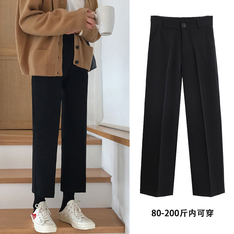 大码西装裤女秋冬直筒胖mm宽松200斤垂感九分高腰显瘦休闲阔腿裤