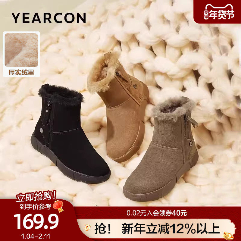 意尔康真皮加绒雪地靴女休闲平底加厚保暖短靴2025冬款棉鞋马丁靴