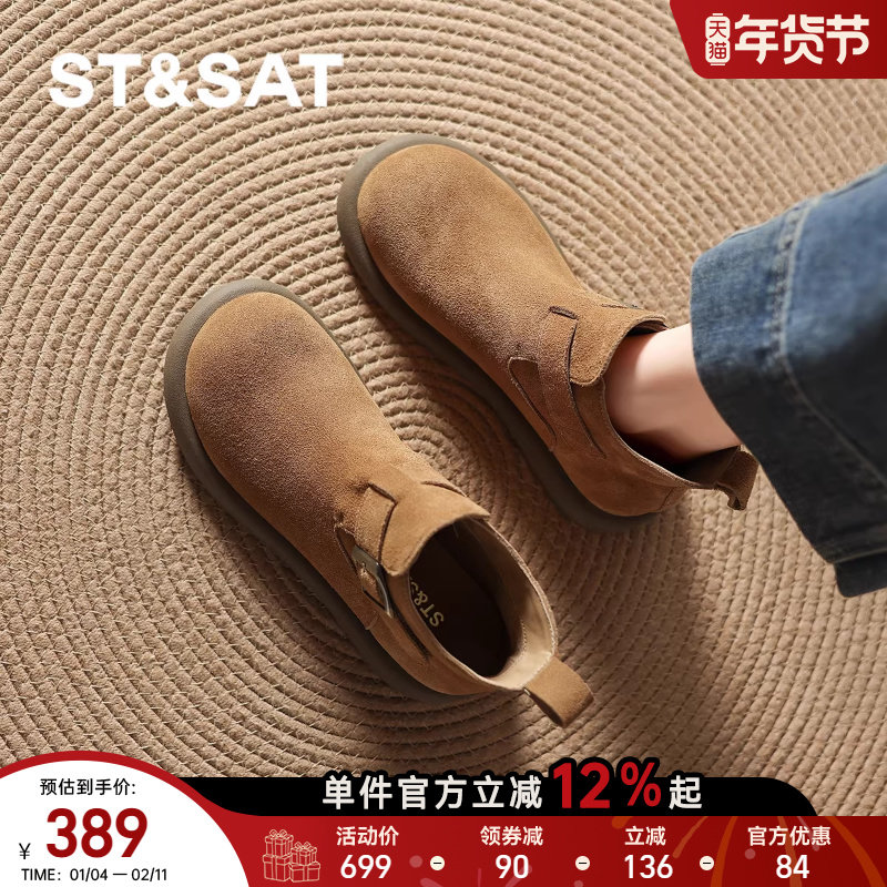星期六勃肯短靴女冬季2025新款英伦风复古马丁靴平底加绒女靴皮靴