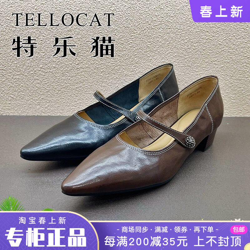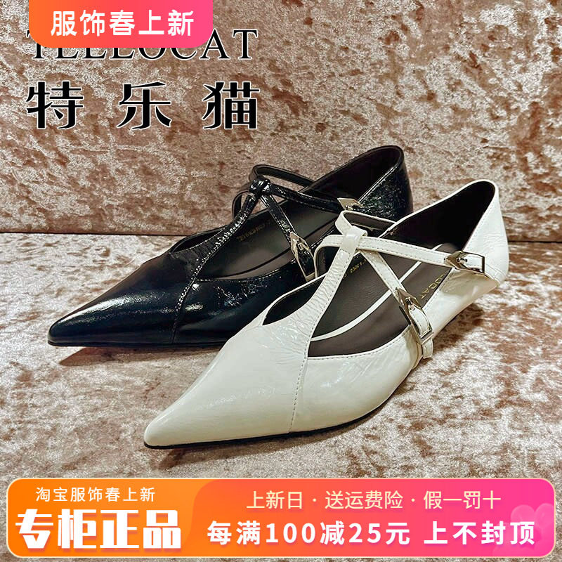 专柜正品特乐猫女鞋2026春新款个性绑带尖头中跟单鞋TBY61C81023